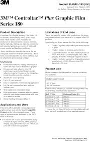 3M Series 180mC film is an ideal vinyl for graphics applied to flat surfaces as well as simple and compound curves. 3M Product Number IJ180C. 3M Controltac Graphic Film with Comply Adhesive 180mC-201 Slate Metallic 1220mm X 457M. 3M Controltac Graphic Film with Comply Adhesive IJ180C-10 White 6 inch Core 60 in x 200 yd. 3M Product Number IJ160. 3m controltac graphic marking system vinyl sticker are also easy to operate and come with distinct varying specifications such as marking areas capacities and many more. 3M Controltac Graphic Film IJ180-10 White 1220 mm x 50 m.