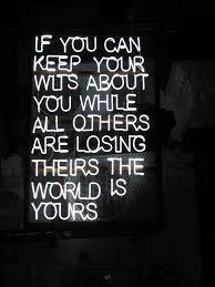 Phrase with special meaning functioning as verb--for example put their heads together come to an end be alert mantenerse alerta loc verb locución verbal. Dont panic just because those two angry northerners Rezin of Aram and Pekah Remaliahs son threaten you and say. To be ready to think quickly in a situation and react to things that you are not expecting. If you can keep your wits about you while all others are losing theirs and blaming you. English Polish Contextual examples of keep your wits about you in Polish. See more ideas about words words of wisdom inspirational quotes. If you can keep your wits about you while all others are losing theirs and blaming you.